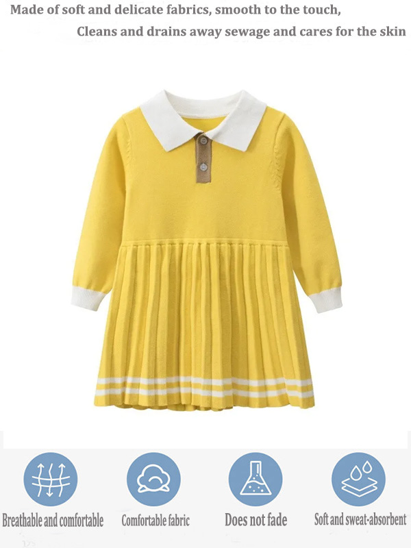 Copy| Product Name | Yellow Girls Sweaters Dress With Collar |